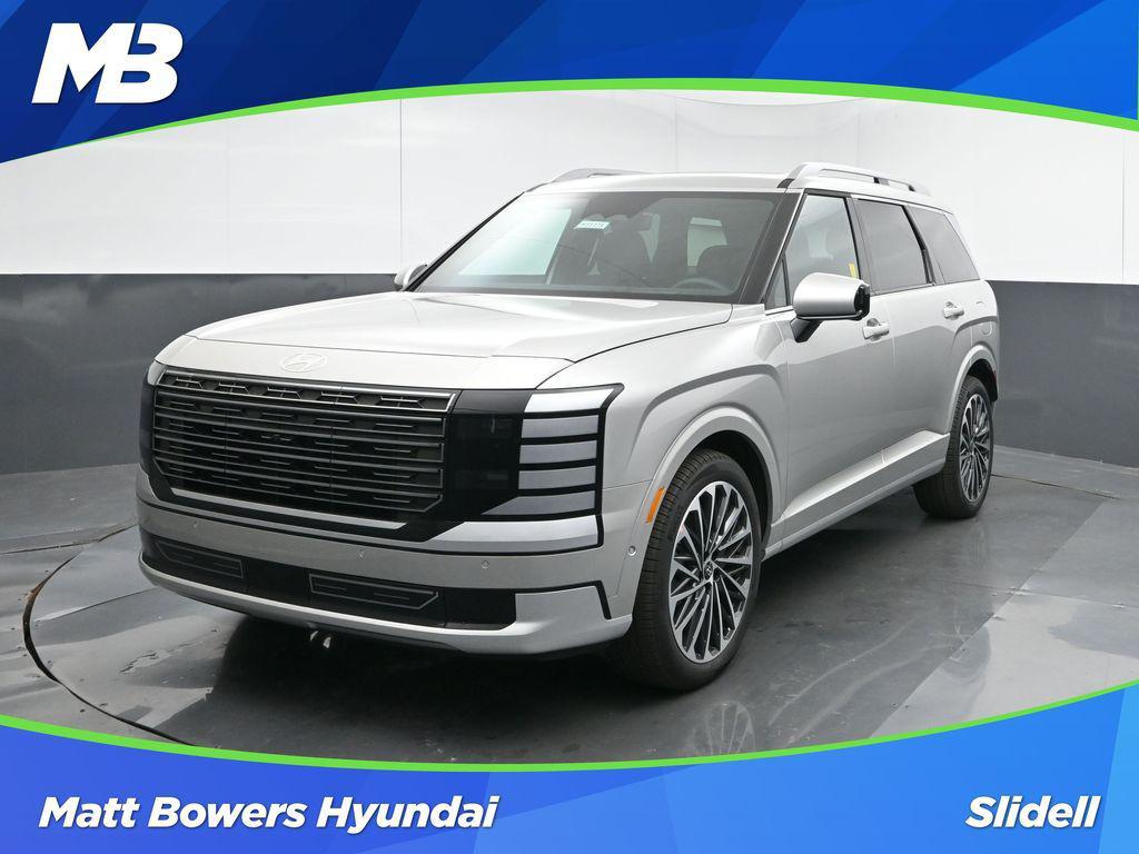Matt Bowers Hyundai of Slidell is proud to offer this wonderful 2026 Hyundai Palisade in Typhoon Silver Metallic. This 2026 Hyundai Palisade comes with the following features; Option Group 01, 14 Speakers, 3rd row seats: split-bench, 4-Wheel Disc Brakes, ABS brakes, Air Conditioning, Alloy wheels, AM/FM radio: SiriusXM, Apple CarPlay & Android Auto, Audio memory, Auto High-beam Headlights, Auto-dimming door mirrors, Auto-dimming Rear-View mirror, Auto-leveling suspension, Automatic temperature control, Brake assist, Bumpers: body-color, Cargo Net, Cargo Tray, Carpeted Floor Mats, Compass, Delay-off headlights, Driver door bin, Driver vanity mirror, Dual front impact airbags, Dual front side impact airbags, Electronic Stability Control, Emergency communication system: Bluelink+, Exterior Parking Camera Rear, First Aid Kit, Four wheel independent suspension, Front anti-roll bar, Front Bucket Seats, Front Center Armrest, Front dual zone A/C, Front reading lights, Fully automatic headlights, Garage door transmitter: HomeLink, Genuine wood console insert, Genuine wood dashboard insert, Heads-Up Display, Heated & Ventilated Front Bucket Seats, Heated door mirrors, Heated front seats, Heated rear seats, Heated steering wheel, HVAC memory, Illuminated entry, Knee airbag, Leather steering wheel, Low tire pressure warning, Memory seat, Navigation System, Occupant sensing airbag, Outside temperature display, Overhead airbag, Overhead console, Panic alarm, Passenger door bin, Passenger vanity mirror, Power door mirrors, Power driver seat, Power Liftgate, Power moonroof, Power passenger seat, Power steering, Power windows, Premium Nappa Leather Seat Trim, Radio data system, Radio: Infotainment Navigation System, Rain sensing wipers, Rear air conditioning, Rear anti-roll bar, Rear audio controls, Rear reading lights, Rear side impact airbag, Rear window defroster, Rear window wiper, Reclining 3rd row seat, Remote keyless entry, Roadside Assistance Kit, Security system, Speed control, Split folding rear seat, Spoiler, Steering wheel mounted audio controls, Tachometer, Telescoping steering wheel, Tilt steering wheel, Traction control, Trip computer, Turn signal indicator mirrors, Variably intermittent wipers, Ventilated front seats, Ventilated rear seats, and Wheels: 21" x 8.5J Alloy.